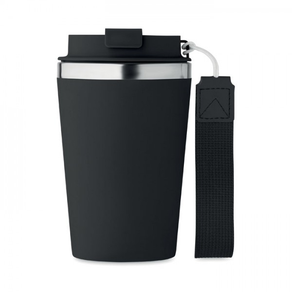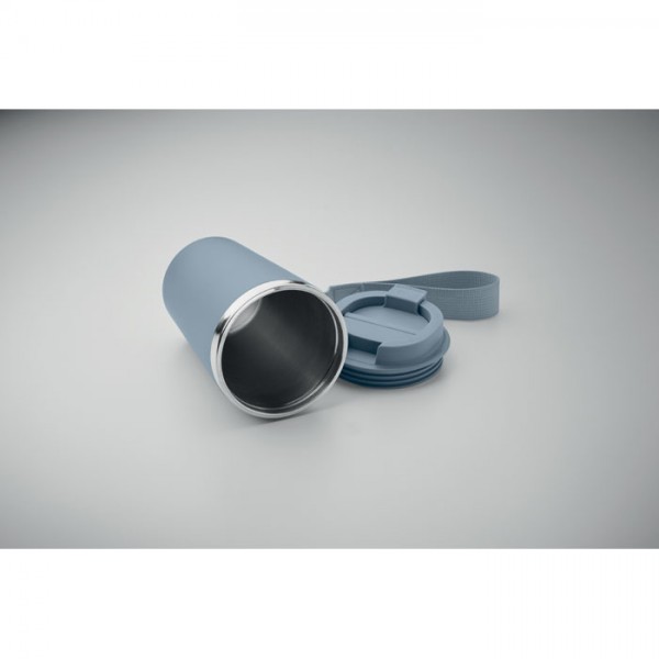 Дорожная кружка "Topaz" с двойными стенками из переработанной нержавеющей стали. С удобной ручкой, изготовлена из устойчивого, переработанного материала. Объем: 350 мл.