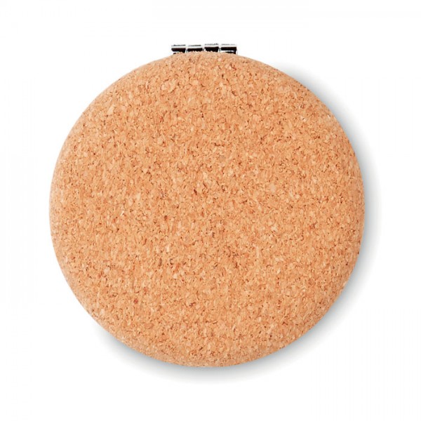 Круглое двустороннее компактное зеркало с покрытием из пробковой поверхности.